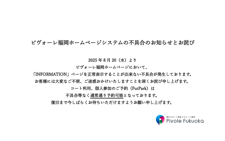 予約サイト(FutPark)は不具合等なく通常通り稼働しております。