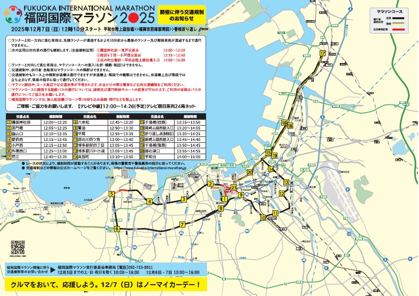 2025年12月7日(日)福岡国際マラソンが開催予定となっております。