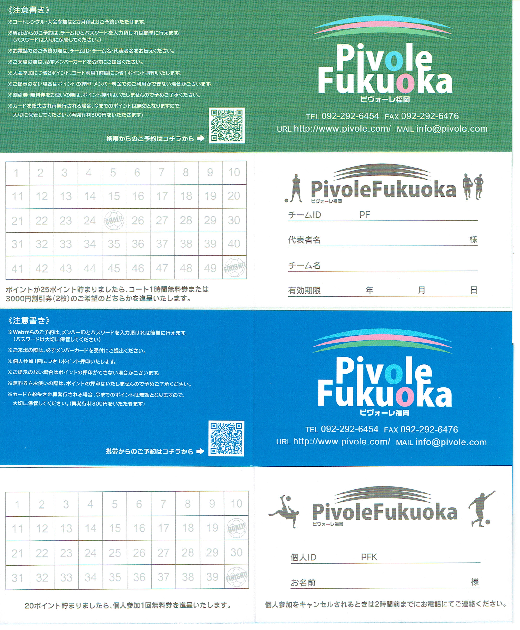 当施設ポイントカード(チームカード・個人参加カード)にて